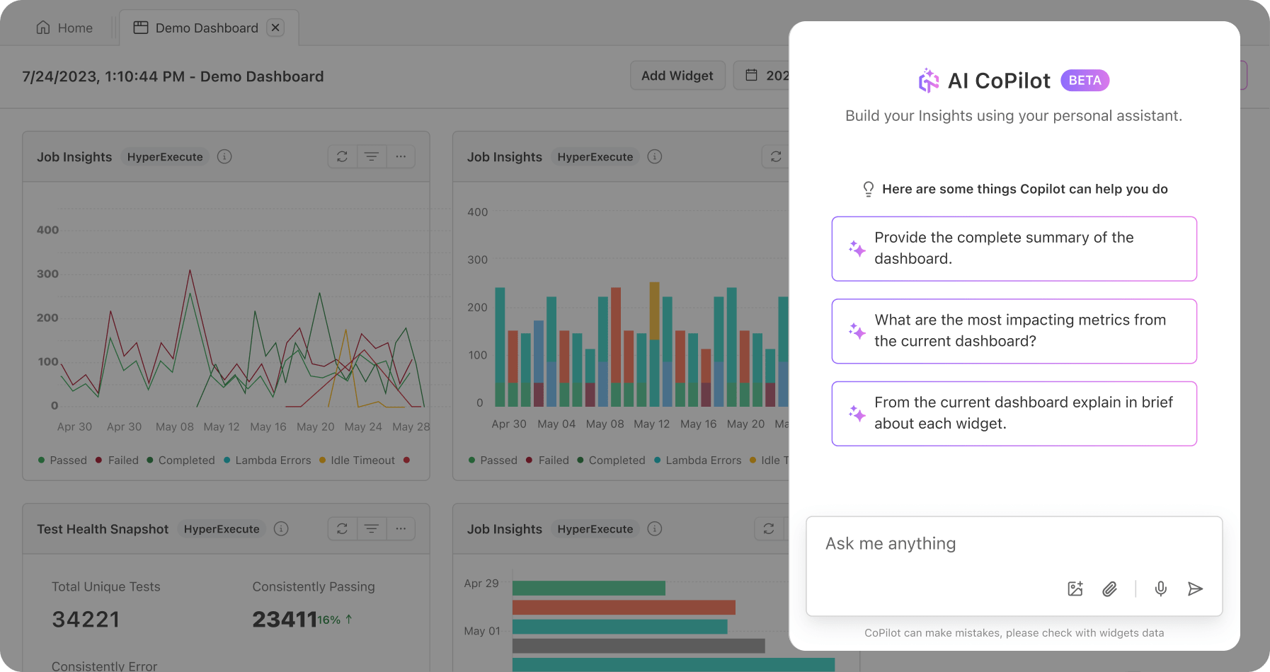 Analyze test insights using your personal assistant. Enhance data interpretation for faster data-driven decisions.